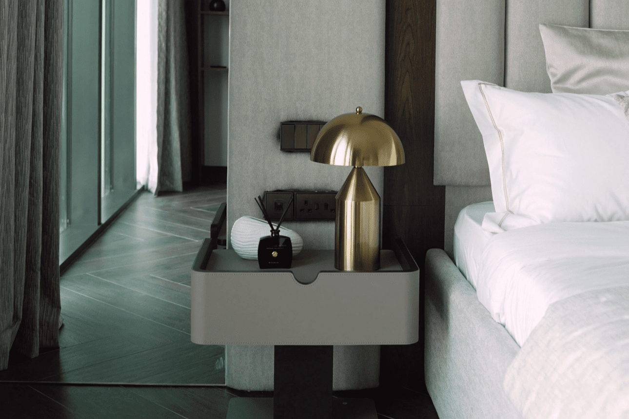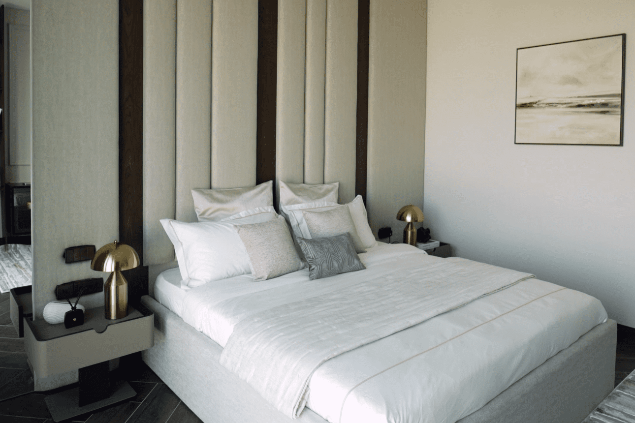 • serene bedroom: quiet retreats with padded headboards, minimalist styling, and tasteful brass accents;