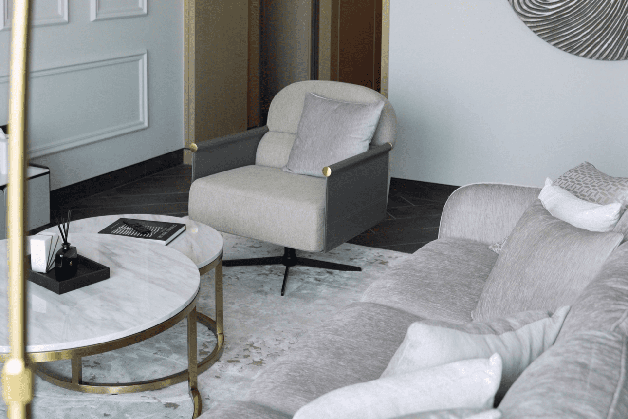 This design offers a seamless fusion of comfort and high-end, understated glamour.